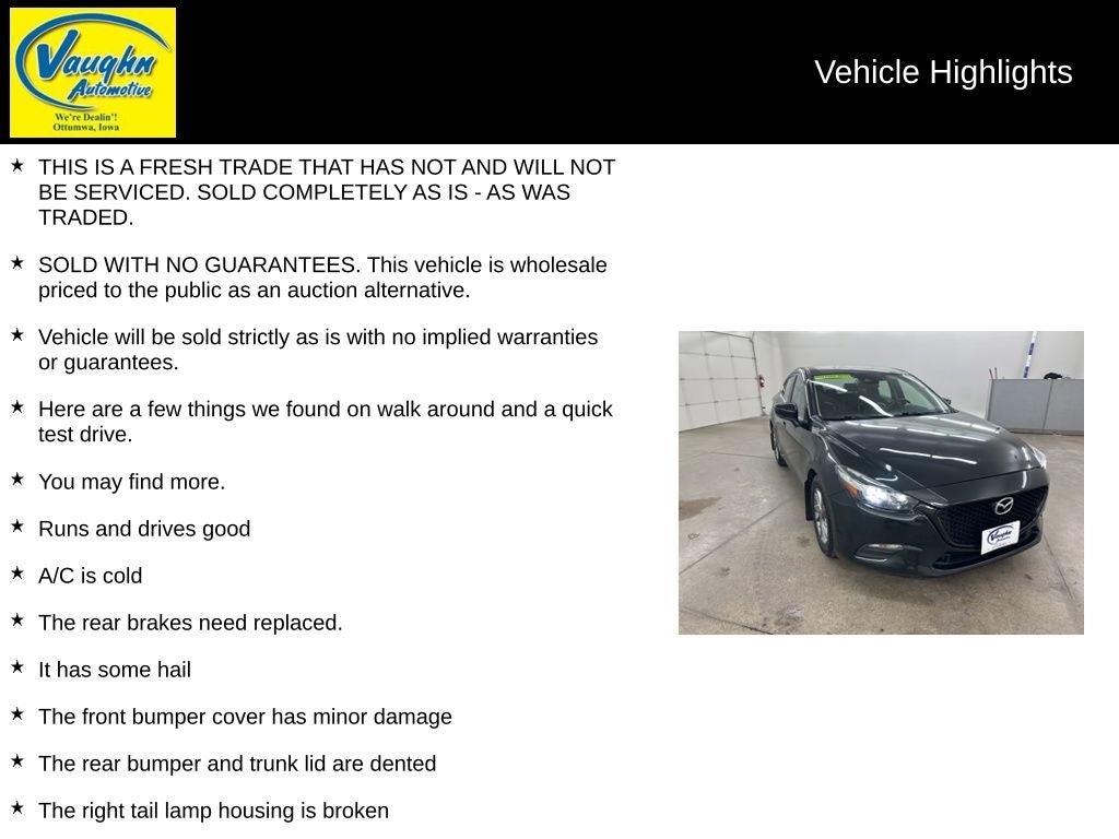 While this vehicle is being sold as-is, we've thoroughly inspected it and are confident in its overall condition. With a little TLC, this Mazda3 Touring can be the perfect daily driver or weekend getaway companion.