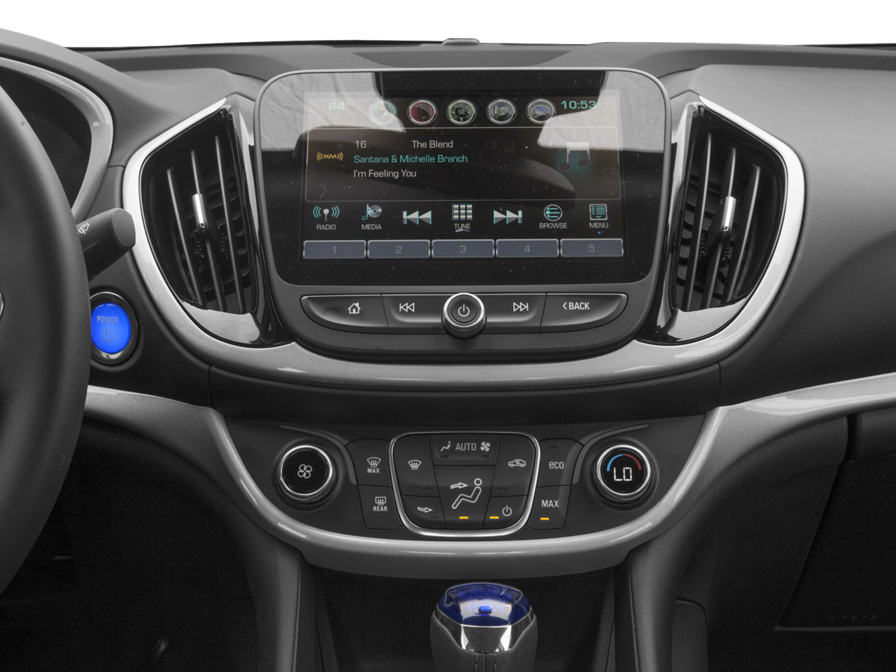 - Audio System, Chevrolet MyLink Radio with 8" diagonal color touch-screen, AM/FM stereo with seek-and-scan and digital clock, includes Bluetooth® streaming audio for music and select phones; voice-activated technology for radio and phone; featuring Apple CarPlay capability for compatible phone