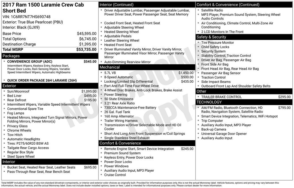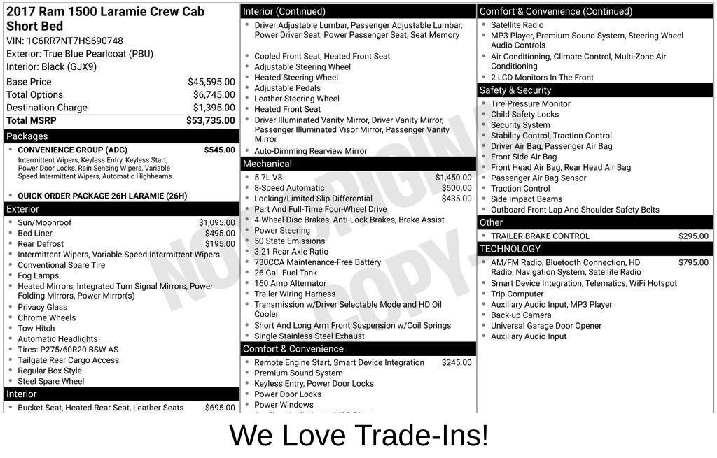 The Laramie trim level offers a wealth of convenient features, including keyless entry, remote start, and a backup camera. You'll also enjoy the added security of the certified warranty, giving you peace of mind on the road. This truck has been expertly maintained, with a recent oil change and new wiper blades installed.