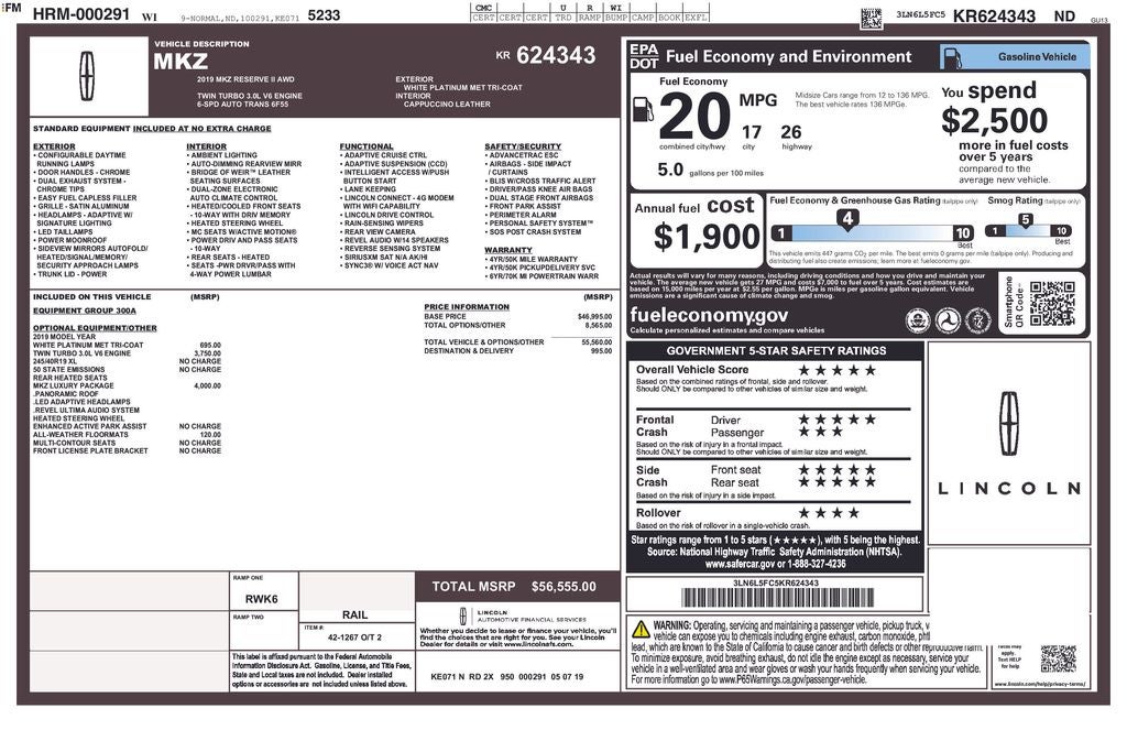 With a comprehensive 165-point inspection and a 90-day/3,000-mile powertrain warranty, this 2019 Lincoln MKZ Reserve is a compelling choice for the discerning luxury car buyer. Experience the refined comfort, dynamic performance, and advanced technology that make this vehicle a true standout in its class.