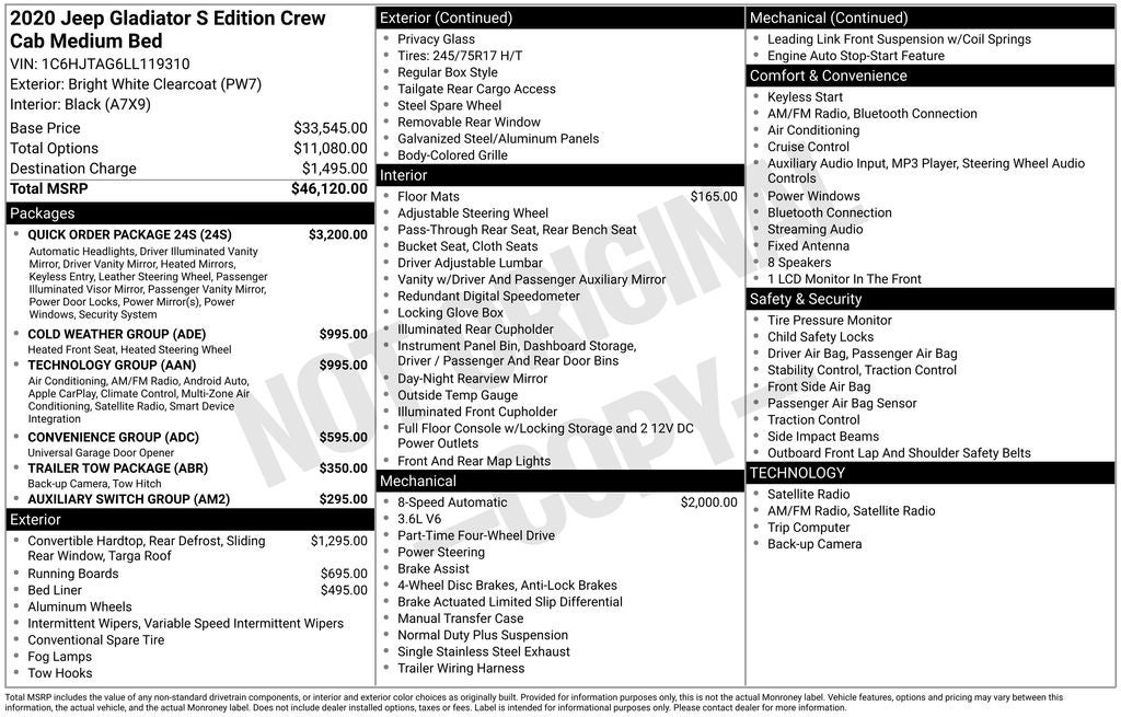 - Vehicle Name: Jeep Gladiator