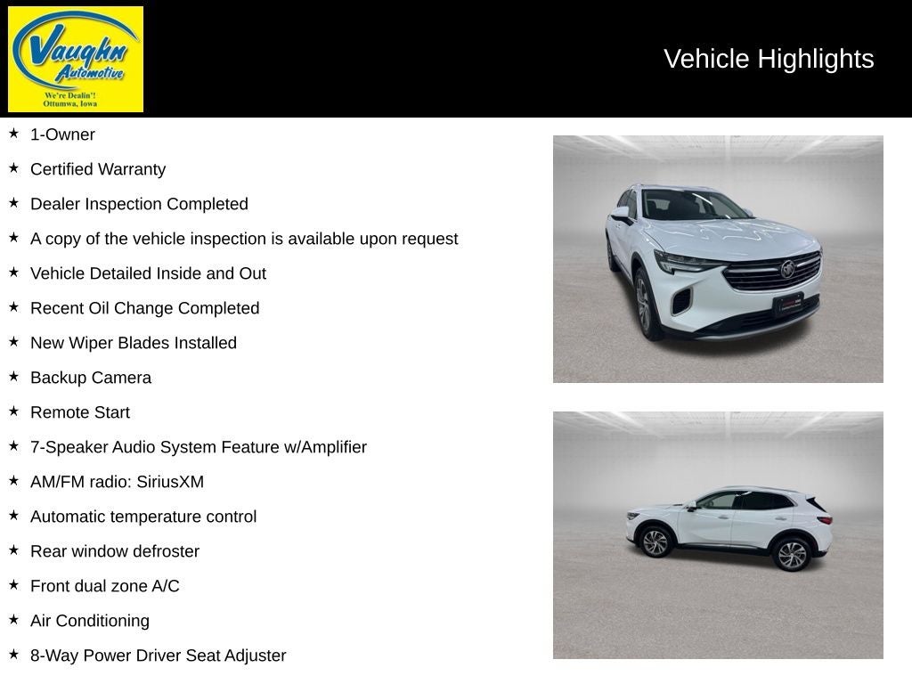 This 2021 Buick Envision Essence is a certified pre-owned vehicle, giving you the peace of mind that comes with a thorough inspection and warranty coverage. With its sleek white exterior and advanced all-wheel-drive powertrain, this Envision is ready to take on any adventure.