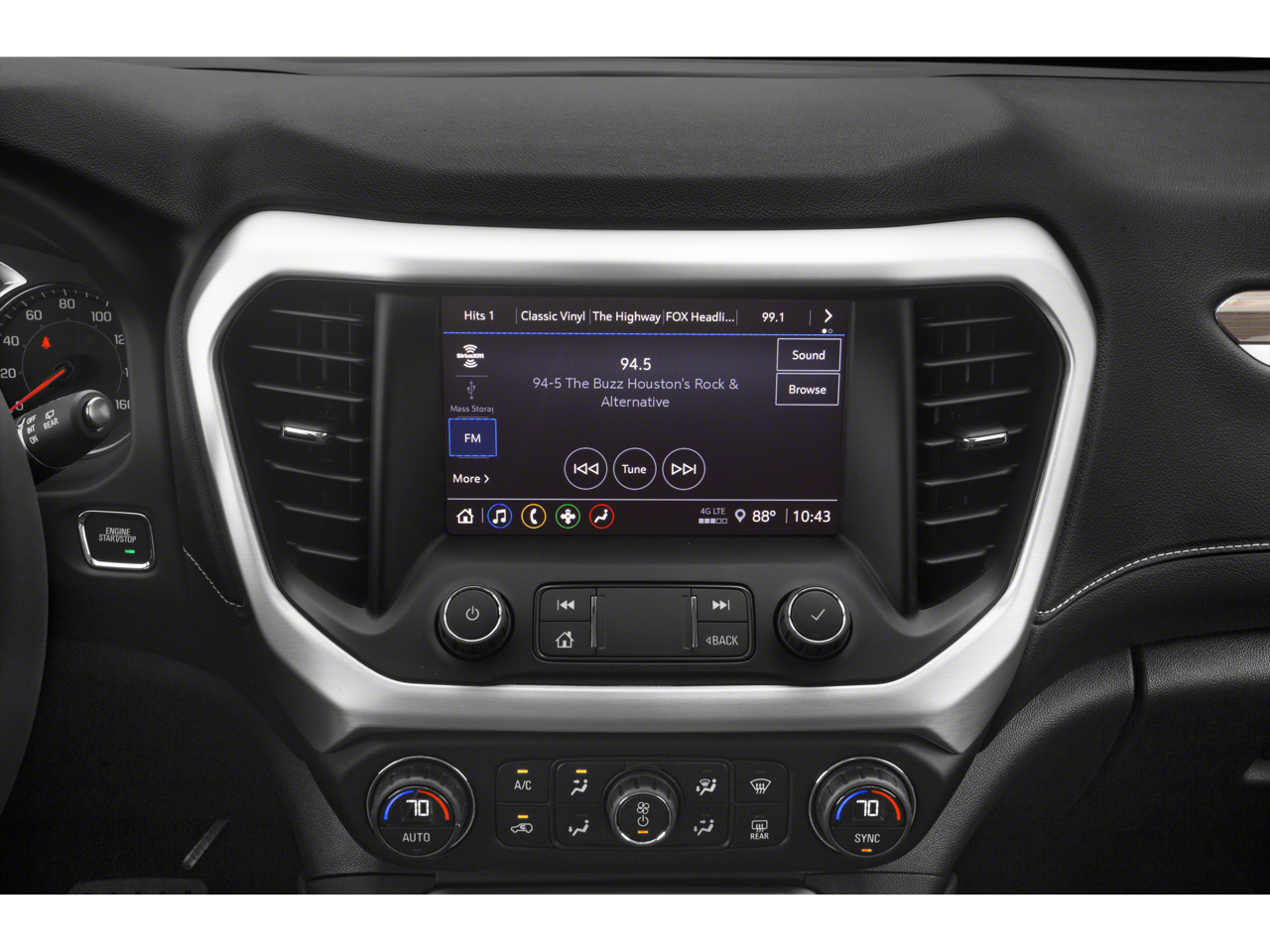 - Audio system, 8" diagonal GMC Infotainment System with Navigation includes multi-touch display, AM/FM/SiriusXM stereo, Bluetooth streaming audio for music and most phones, Android Auto and Apple CarPlay capability for compatible phones, advanced voice recognition, in-vehicle apps, personalized profiles for infotainment and vehicle settings