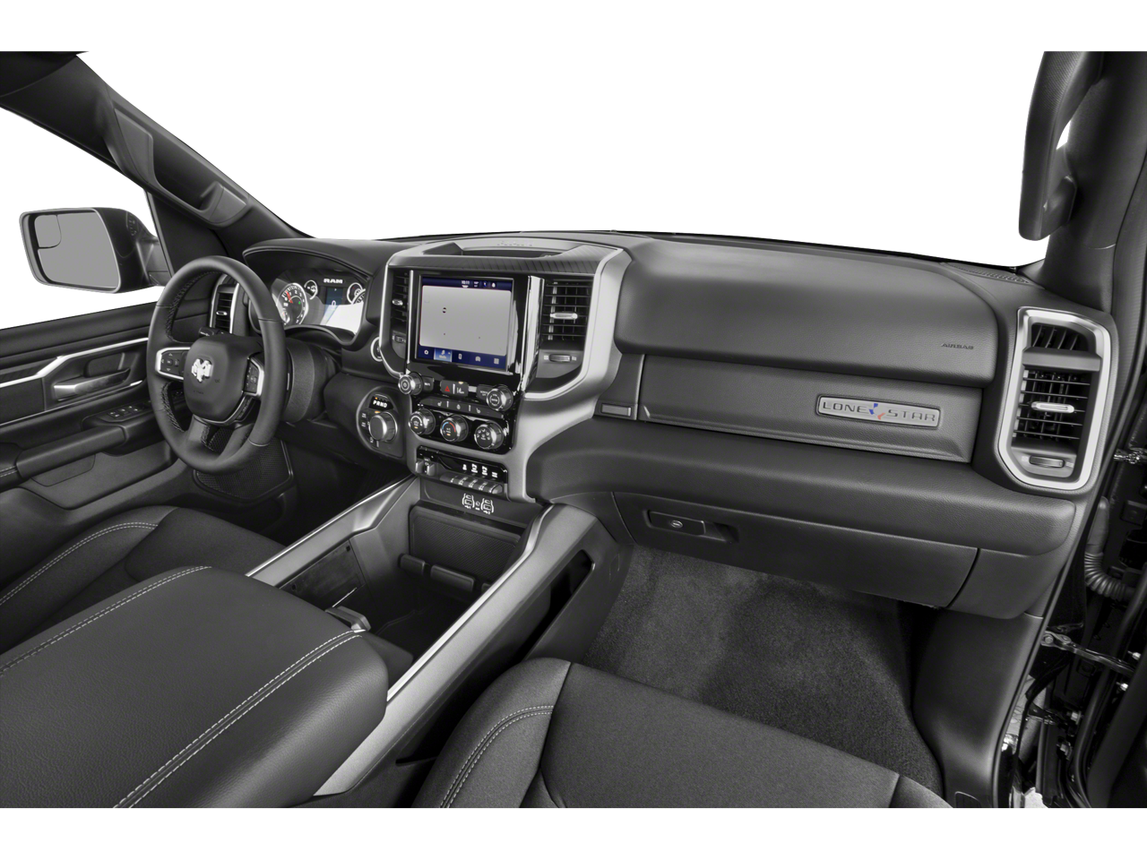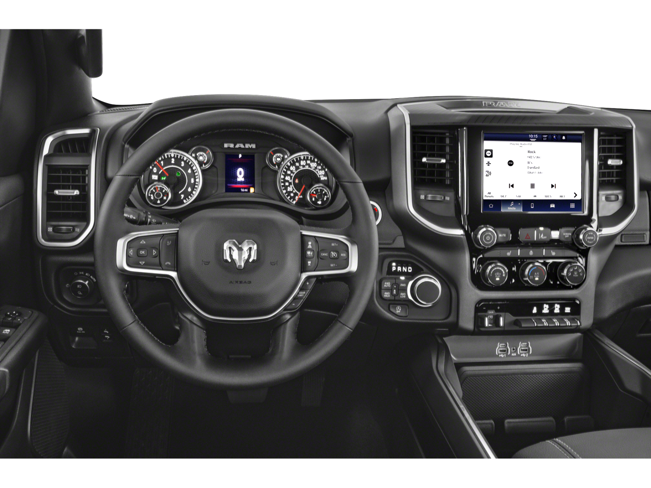 1-Owner, Balance of Factory Warranty, Dealer Inspection Completed, A copy of the vehicle inspection is available upon request, Vehicle Detailed Inside and Out, Recent Oil Change Completed, New Wiper Blades Installed, Factory Warranty: • Balance of remaining bumper to bumper factory warranty •, 8-Speed Automatic, 4WD, Black w/Cloth High-Back Bucket Seats, 115V Auxiliary Power Outlet, 115V Auxiliary Rear Power Outlet, 12 Touchscreen Display, 2nd Row In Floor Storage Bins, 400W Inverter, 4G LTE Wi-Fi Hot Spot, 9 Amplified Speakers w/Subwoofer, ABS brakes, Air Conditioning ATC w/Dual Zone Control, Apple CarPlay, Auto High-beam Headlights, Auto Power-Folding Mirrors, Auto-Dimming Exterior Driver Mirror, Auto-Dimming Rear-View Mirror, Big Horn Level 2 Equipment Group, Black Exterior Mirrors, Black Interior Accents, Black Premium Power Mirrors, Body Color Door Handles, Body Color Front Bumper, Body Color Rear Bumper w/Step Pads, Body Color Tailgate Handle, Cluster 7.0 TFT Color Display, Configurable Drive Mode, Connected Travel & Traffic Services, Connectivity - US/Canada, Convex Wide-Angle Exterior Mirror Insert, Deluxe Cloth Bucket Seats, Dual front impact airbags, Dual front side impact airbags, Electronic Stability Control, Exterior Mirrors Courtesy Lamps, Exterior Mirrors w/Heating Element, Exterior Mirrors w/Supplemental Signals, Front fog lights, Fully automatic headlights, Glove Box Lamp, Google Android Auto, GPS Antenna Input, GPS Navigation, Grille Surround 1 Body Color Texture 1 Black, HD Radio, Heated door mirrors, Heated Front Seats, Heated Steering Wheel, Integrated Voice Command w/Bluetooth®, Leather Wrapped Steering Wheel, LED Dome Lamp w/On/Off Switch, LED Footwell Lighting, Low tire pressure warning, Manual Folding Exterior Mirrors, Media Hub w/2 Charge Only USBs, Occupant sensing airbag, Overhead airbag, Overhead console, Overhead LED Lamps, Panic alarm, ParkView Rear Back-Up Camera, Power 2-Way Driver Lumbar Adjust, Power Adjust 8-Way Driver Seat, Power Adjustable Pedals, Power door mirrors, Premium Overhead Console, Radio: Uconnect 5 Nav w/12.0 Display, RAM Grille Badge - Chrome, Rear Power Sliding Window, Rear Window Defroster, Remote Tailgate Release, Security Alarm, SiriusXM w/360L, Speed control, Split folding rear seat, Sport Appearance Package, Steering Wheel Mounted Audio Controls, Sun Visors w/Illuminated Vanity Mirrors, Telescoping steering wheel, Tilt steering wheel, Traction control, Universal Garage Door Opener, USB Host Flip, Wheels: 20 x 9 Aluminum Chrome Clad (WRK). 3.6L V6 24V VVT Diamond Black Crystal Pearlcoat 2025 Ram 1500 Big Horn/Lone Star
